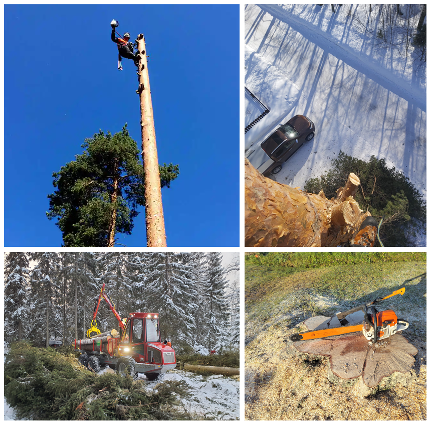 Halutessasi voit valita pelkän kaadon tai puiden ja risujen poisviennin sekä siivouksen. Kantojen jyrsiminen on myös mahdollista.